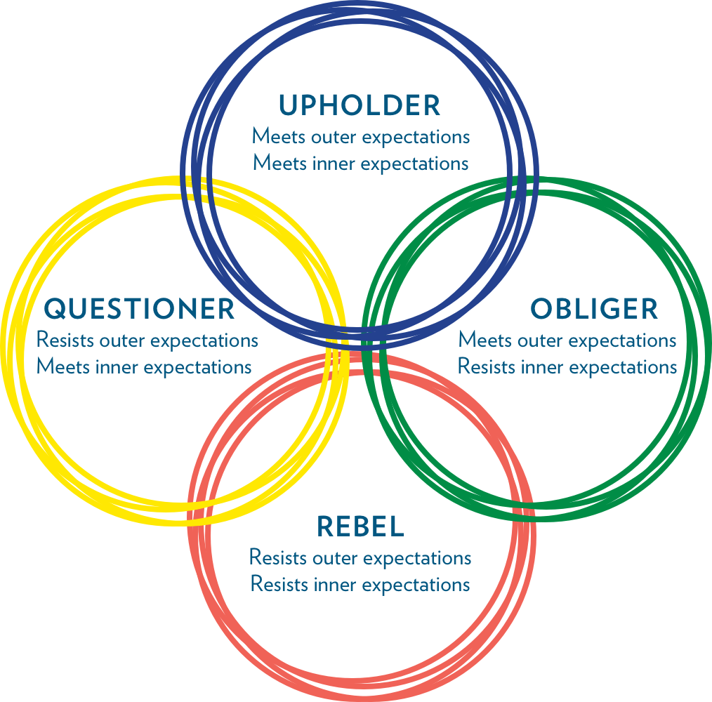 The short version of the Four Tendencies is this: the key to getting things done and changing your habits is considering how you respond to outer expectations and inner expectations. If you’re someone who always lives up to others’ expectations but has a hard time meeting goals you set for yourself, you’re probably an Obliger. If you’re able to meet your own goals but resist arbitrary rules and struggle with others’ expectations unless you understand why they’re meaningful, you’re probably a Questioner. If you resist both inner and outer expectations and feel stifled by routine and habits, you’re probably a Rebel. And if you tend to meet both inner and outer expectations, you’re likely an Upholder. (That’s Rubin’s own tendency, not surprisingly, and she’s a bit smug about it at times. But if you want to feel a little good and a little bad about your Tendency, you can check out this graphic, the third one in the post, which lists positives and negatives for each Tendency. Upholders may be self-directed, but they can also be rigid, disapproving, and judgmental.)