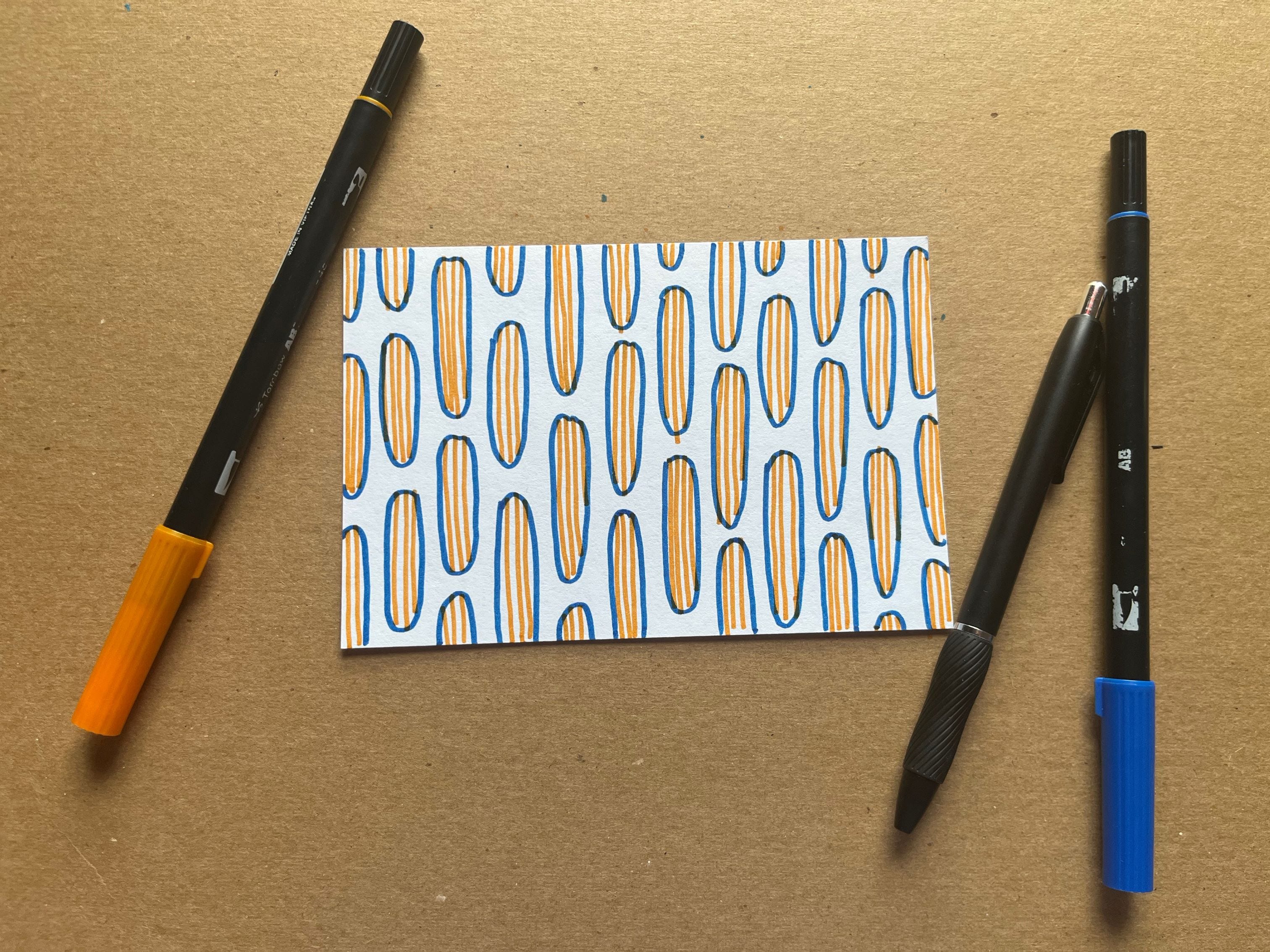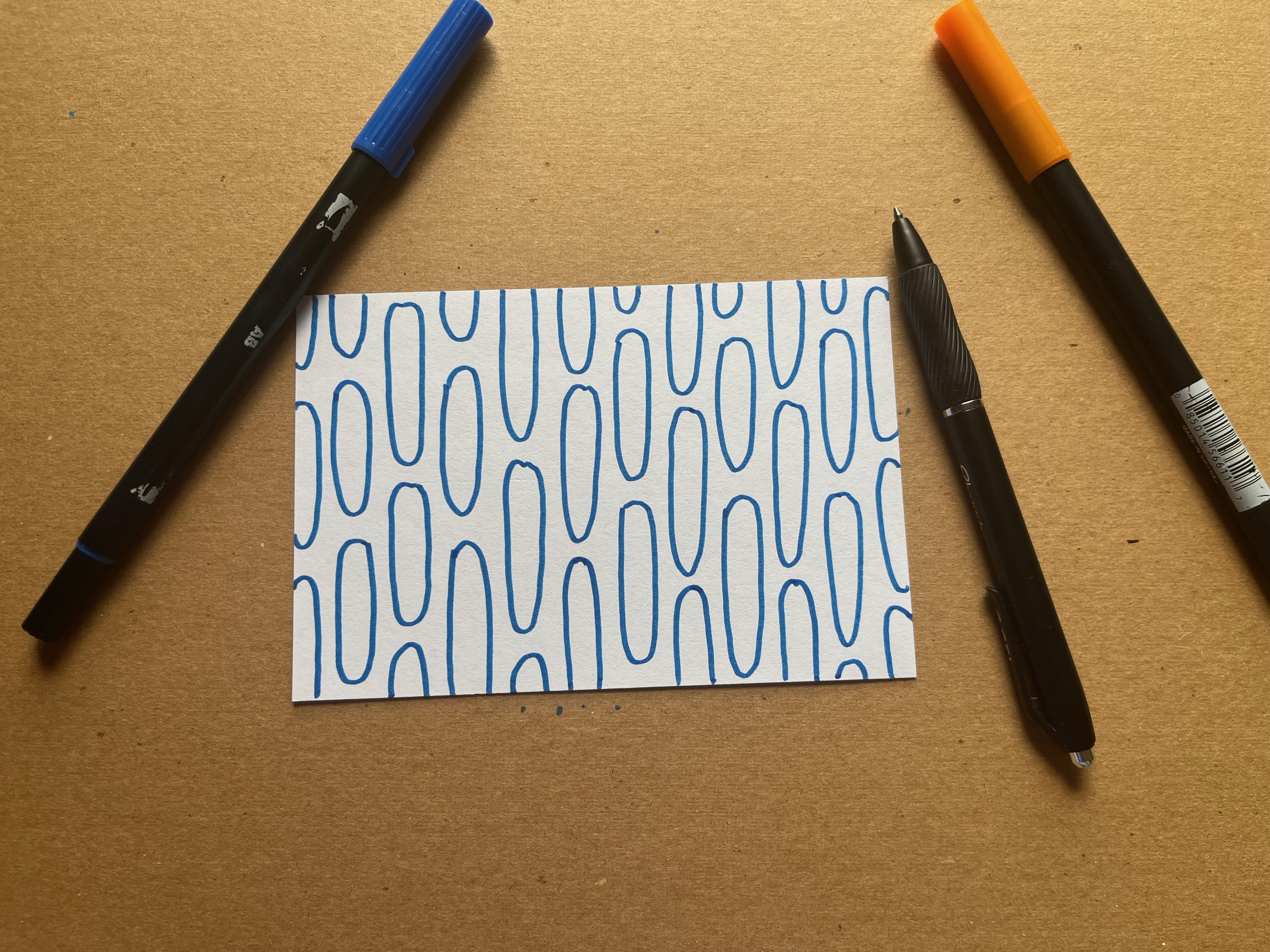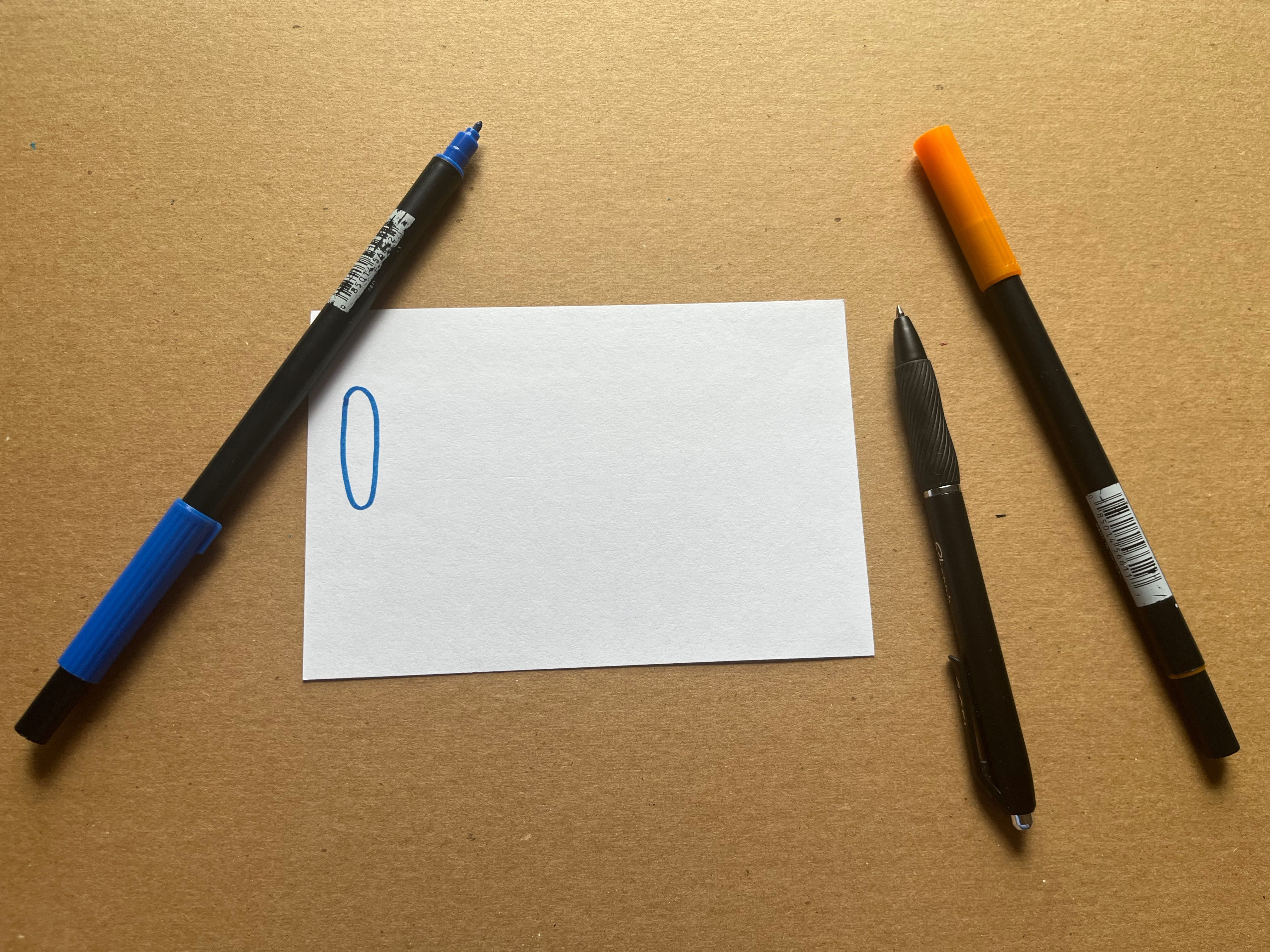 Find an index card or small piece of scrap paper, no bigger than 8 x 5 inches, and two or three different colored pens, pencils, and/or markers. We are not making Art here, just a controlled doodle that you can recycle the moment you are finished.