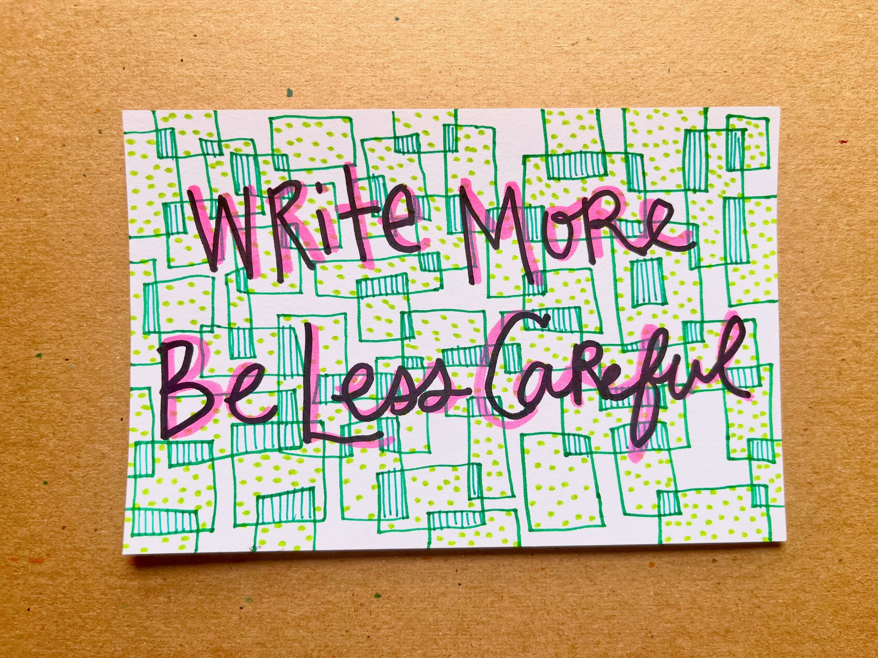 Write More, Be Less Careful is a newsletter about why writing is hard & how to do it anyway. You can find my books here and read other recent writing here. If you’d like occasional dog photos, glimpses of my walks around town, and writing process snapshots, find me on instagram.