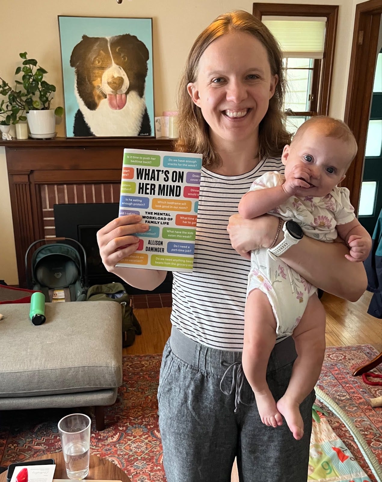 Allison Daminger is an assistant professor of sociology at the University of Wisconsin-Madison. Her first book, What’s on Her Mind: The Mental Workload of Family Life, has just been published by Princeton University Press. You can buy it wherever books are sold, and if you happen to be near Madison, Milwaukee, Chicago, Princeton, Boston, or Philly, you can hear Allison talk about her work live this Fall. Allison also writes a weekly newsletter, The Daminger Dispatch, all about the ways gender shapes our closest relationships.