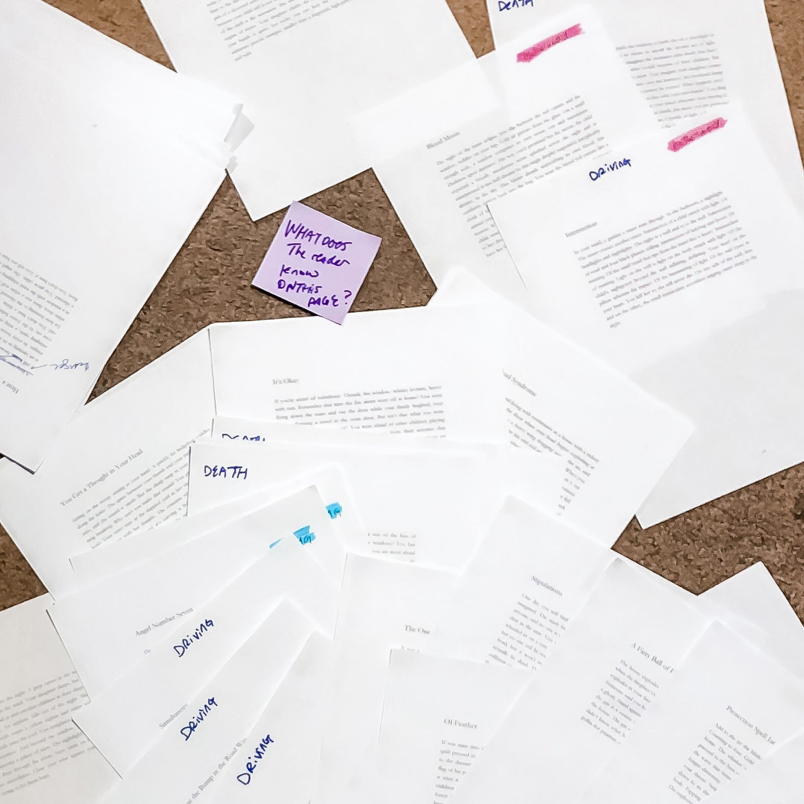 1. The Pile Strategy: Break your manuscript into manageable pieces.